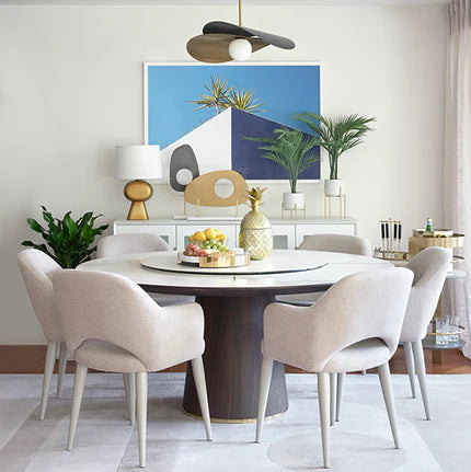 Enter the refined realm of Vogue Vista, our latest design vanguard. In this trend, sleek Indigo pieces lay the groundwork for striking statement elements, blending bone inlay and velvet with lustrous metals for enduring elegance. Vogue Vista unites reflective finishes with playful geometrics, inviting a youthful spirit into the space. Vibrant color accents and intriguing forms transform everyday objects into focal points of fascination and style.