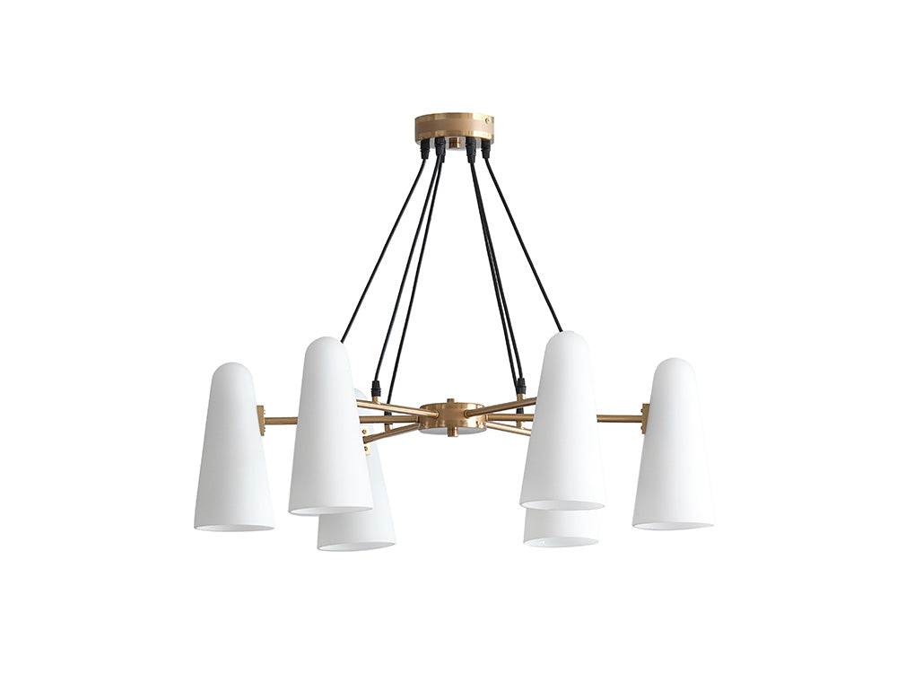 The Rydan Chandelier is a glass ceiling lamp with a gold structure. It will fit perfectly in your living room or dining room.